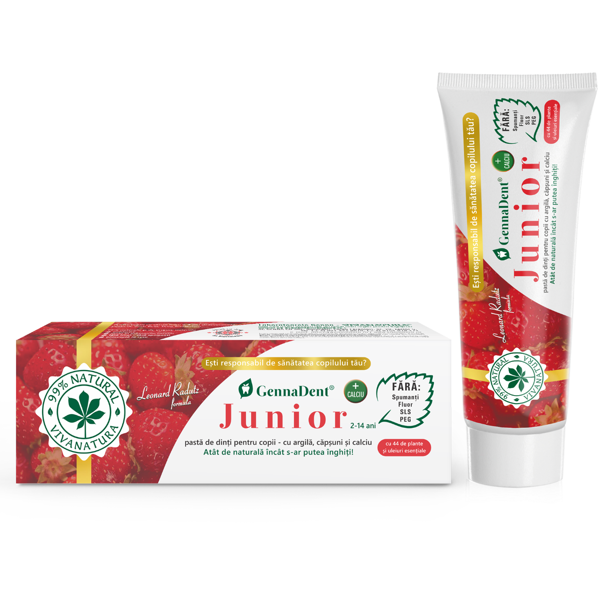 Acest produs Pasta de dinti cu capsuni GennaDent Junior, 50ml, VivaNatura din categoria Mama si copilul se poate comanda online la un pret redus.
