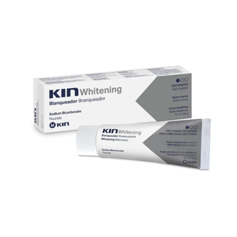 Pasta de dinti Kin Whitening combate petele fara a va deteriora smaltul dentar.Aceasta pasta de dinti cu albire progresiva combina cristale foarte mici de bicarbonat de sodiu pentru a produce o formula eficienta de prevenire a placii si de combatere a petelor. Pasta de dinti Kin Whitening ajuta dintii sa-si recapete albul initial, prevenind in acelasi timp aparitia cariilor.