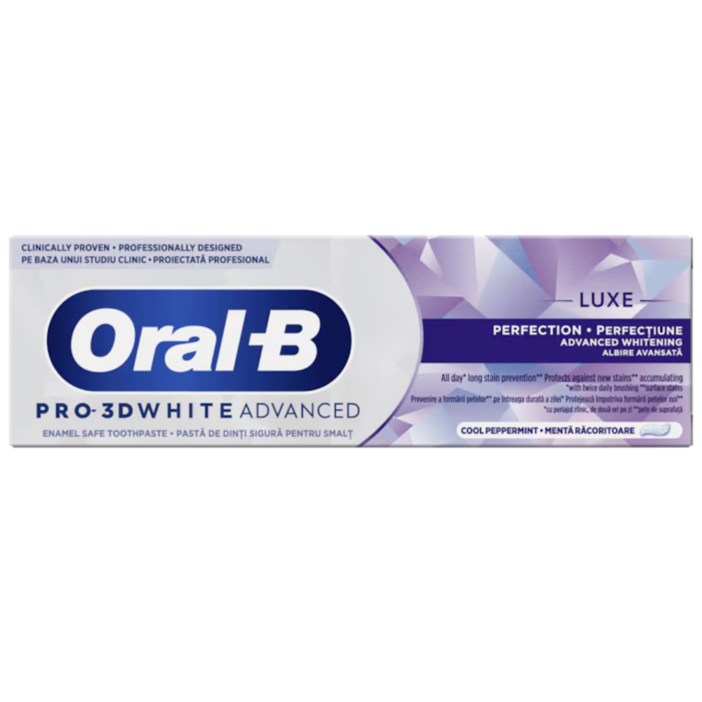 Acest produs Pasta de dinti Pro 3D White Advanced Luxe Perfection, 75ml, Oral-B din categoria Frumusete si ingrijire se poate comanda online la un pret redus.