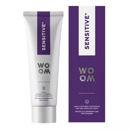 Acest produs Pasta de dinti Sensitive+, 75ml, Woom din categoria Frumusete si ingrijire se poate comanda online la un pret redus.