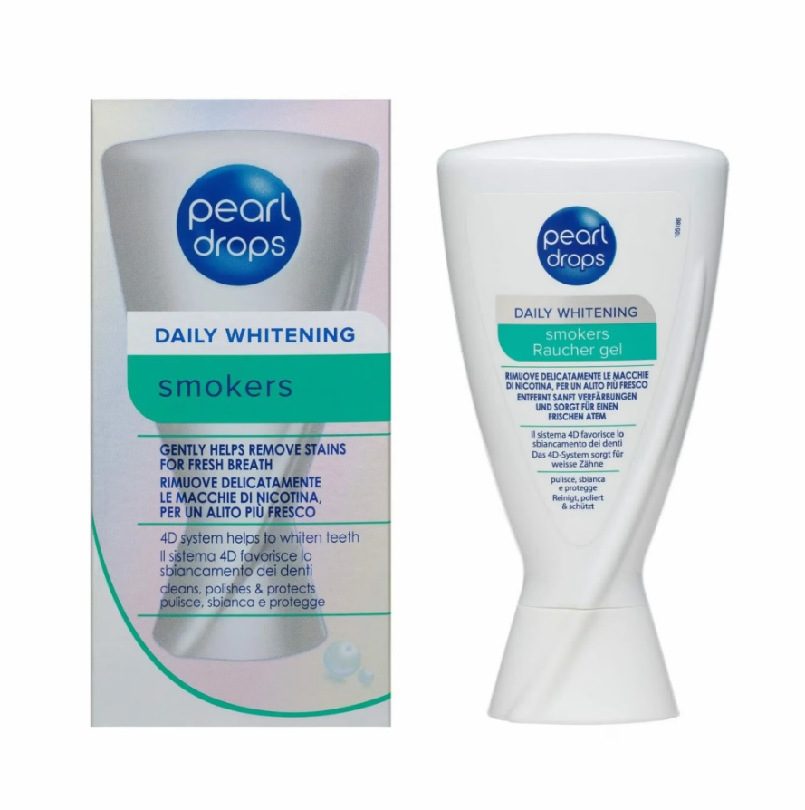 Pasta de dinti Pearl Drops Smokers ajuta la restabilirea albului natural al dintilor, la eliminarea nicotinei si a petelor cauzate de fumat, previne aparitia cariilor si improspateaza respiratia.