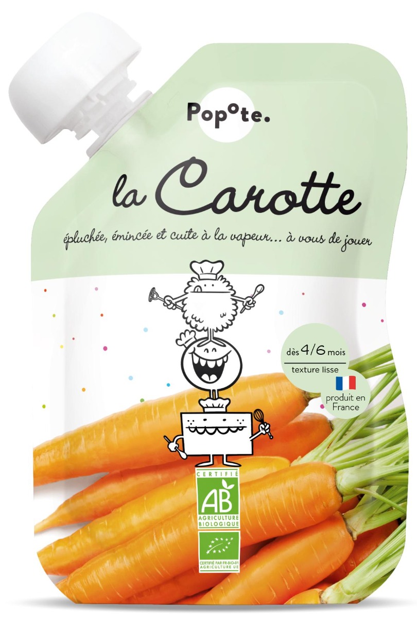 Piure bio Popote cu morcovi, 100% organic, fara aditivi, cu textura fina, creat special pentru diversificare de la 4 luni.