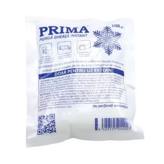 Punga de gheata instant 13x15 cm, 108g – dispozitiv medical de unica folosinta pentru racire rapida, ideala in caz de hematoame, entorse, arsuri minore si alte leziuni externe. Nu necesita congelare sau refrigerare prealabila si ofera efect de racire imediat, pentru calmarea durerii si reducerea inflamatiei.