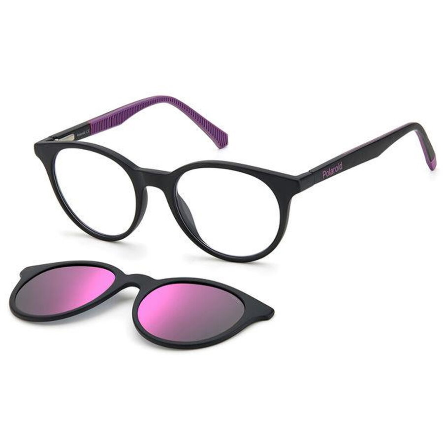 Producator: Polaroid<br>Model: PLD 8044/CS 5F3<br>Pentru: Copii<br>Culoare rama: Negru<br>Stil rama: Oval<br>Material rama: Acetat<br>Tip rama: Rama completa<br>Latime lentile: 45 mm<br>Lungime brate: 130 mm<br>Punte nazala: 17 mm<br>Inaltime lentile: 40.1 mm<br>Tip lentila: Polarizata<br>Culoare lentile: Roz