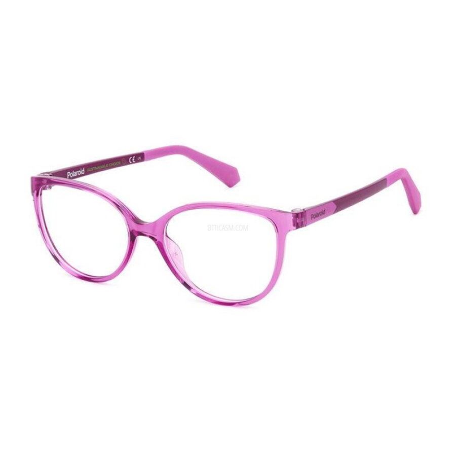 Producator: Polaroid<br>Model: PLD D825 B3V<br>Pentru: Copii<br>Culoare rama: Violet<br>Stil rama: Ochi de pisica<br>Material rama: Plastic<br>Tip rama: Rama completa<br>Latime lentile: 49 mm<br>Lungime brate: 135 mm<br>Punte nazala: 15 mm<br>Inaltime lentile: 38.8 mm