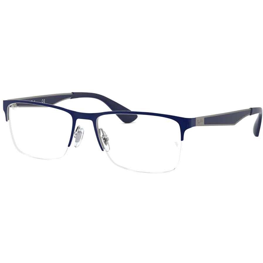 Producator: Ray-Ban<br>Model: RX6335 2947<br>Pentru: Unisex<br>Culoare rama: Albastru<br>Stil rama: Rectangular<br>Material rama: Metal<br>Tip rama: Semi rama<br>Latime lentile: 56 mm<br>Lungime brate: 145 mm<br>Punte nazala: 17 mm<br>Inaltime lentile: 37.2 mm<br>Adecvat pentru lentile progresive: Consultati un consilier in vanzari!