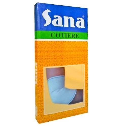 Sana Cotiera L de la Sarah Farm se recomanda persoanelor care depun efort fizic intens sau care fac sport, pentru a-si proteja incheietura cotului. Totodata, este utila in cazul entorselor, luxatiilor, loviturilor sau contuziilor, dar si in cazul durerilor acute si cronice provenite din stari postoperatorii, stari posttraumatice sau ca urmare a bolilor degenerative. Sana Cotiera L de la Sarah Farm poate fi de ajutor si in urma scoaterii gipsului sau pentru a feri zona de frig. Este confectionata din bumbac in proportie de 70%, elastan si poliester si este disponibila in diferite marimi.