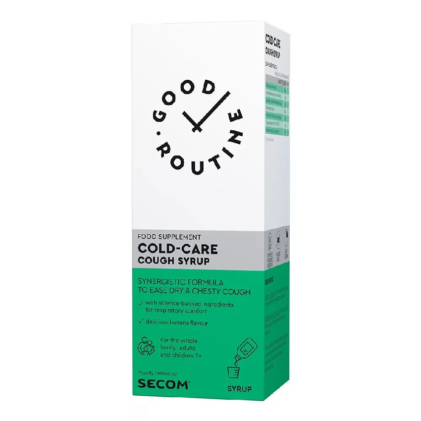 Acest produs Secom Good Routine Cold-Care Cough Syrup 150ml din categoria Raceala si Gripa se poate comanda online la un pret redus.