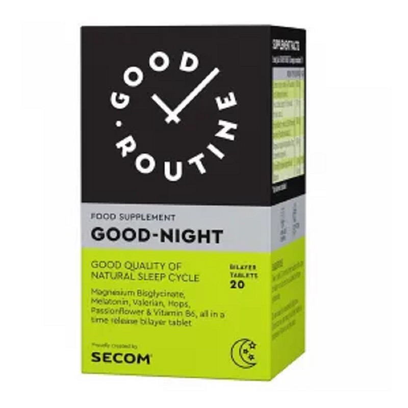 Acest produs Secom Good Routine Good-Night 20 comprimate din categoria Insomnie si Stres se poate comanda online la un pret redus.
