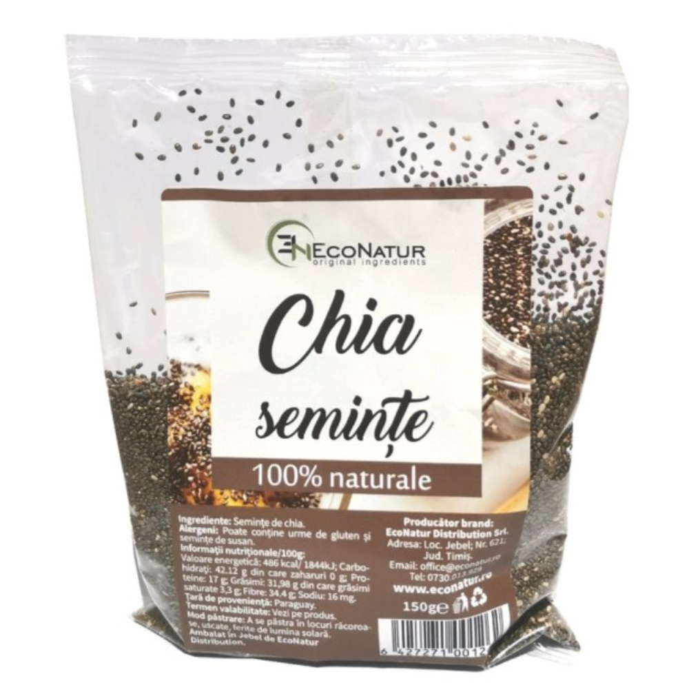Acest produs Seminte de chia, 150g, EcoNatur din categoria Dieta si nutritie se poate comanda online la un pret redus.