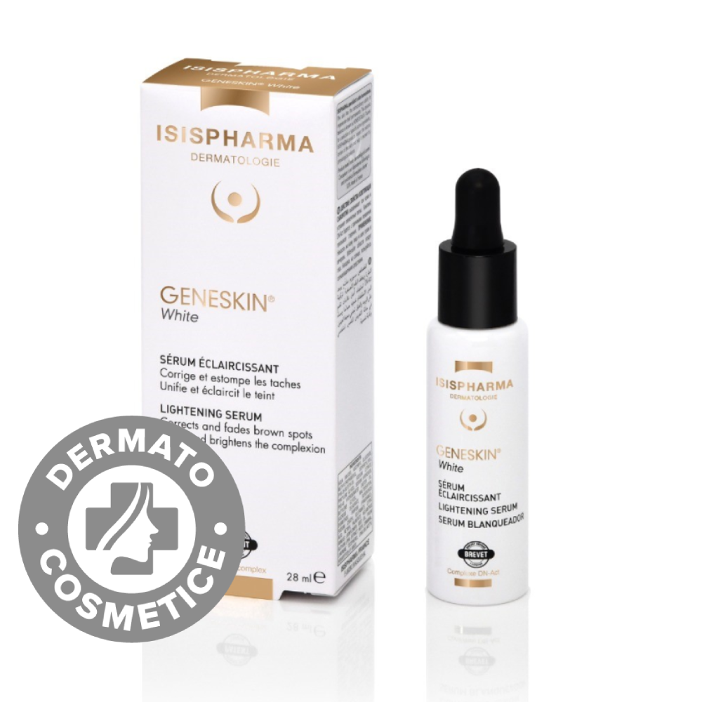 Acest produs Ser depigmentant pentru luminozitatea pielii Geneskin White, 28ml, Isis Pharma din categoria Frumusete si ingrijire se poate comanda online la un pret redus.