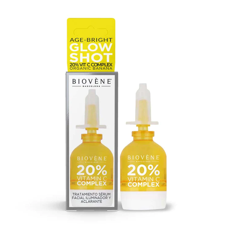 Tratamentul pentru luminozitate Glow Shot contine un complex de 20% vitamina C + banane organice, fiind ideal pentru pielea terna si obosita, cu semne de imbatranire si hiperpigmentare.