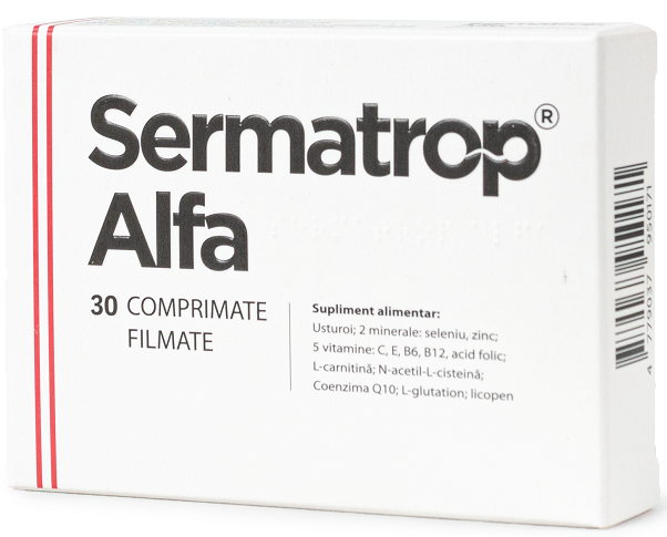 Sermatrop Alfa, supliment alimentar conceput pentru barbati. Ajuta la mentinerea in limite normale a spermatogenezei, ajuta reproducerea. Sermatrop Al