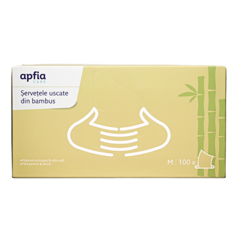 Servetele uscate din bambus Apfia Care sunt extra rezistente, foarte subtiri si ultra moi, realizate din material hipoalergenic si biodegradabil.