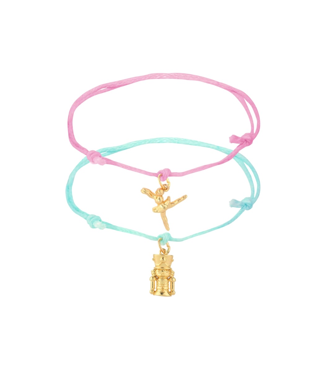 Setul de bratari reglabile Nuts About You, Essence, include doua bratari cu design festiv si pandantive metalice, ideale pentru un look modern.