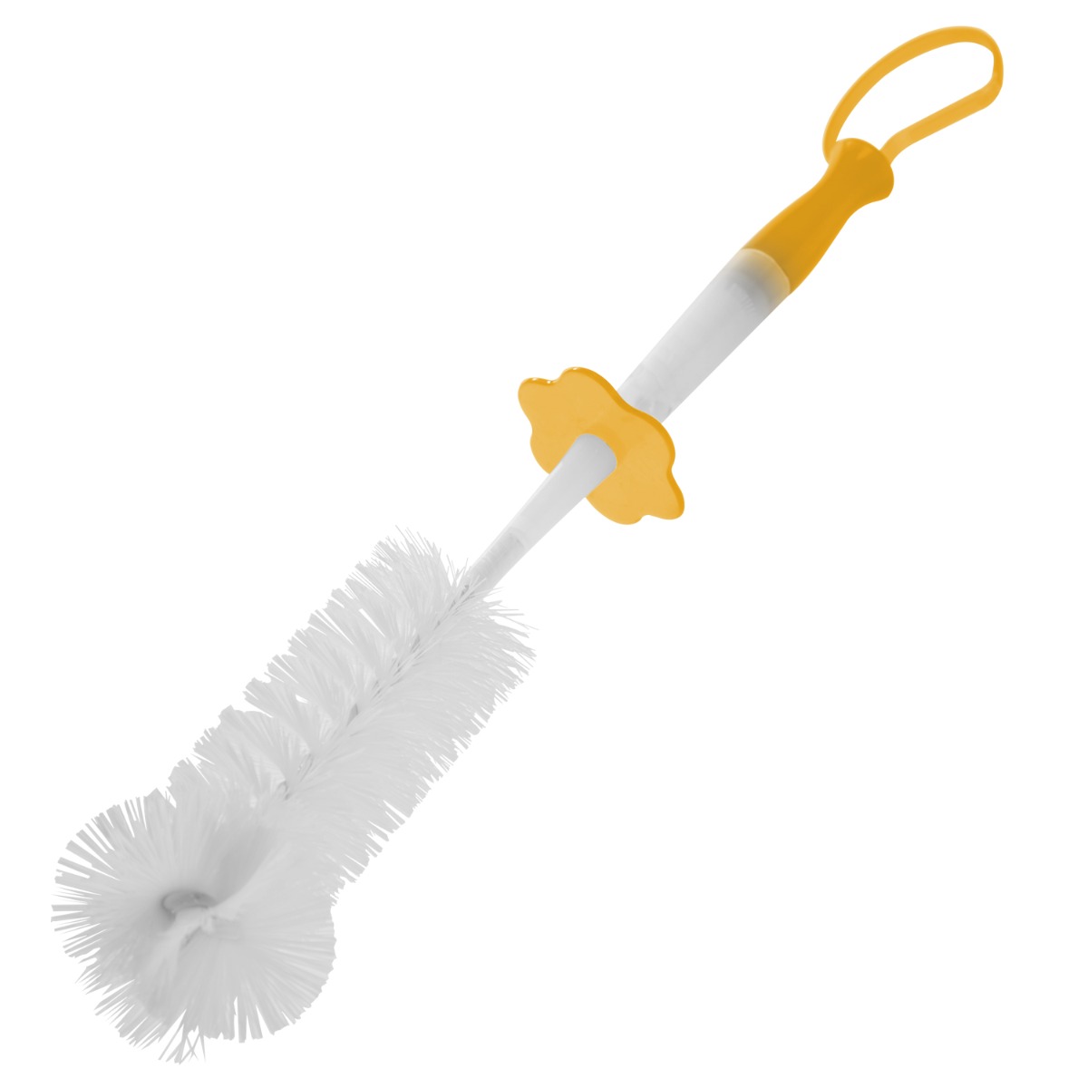 Acest produs Set perie pentru curatarea biberonului si tetinei cu suport galben, 1 bucata, PUR din categoria Mama si copilul se poate comanda online la un pret redus.