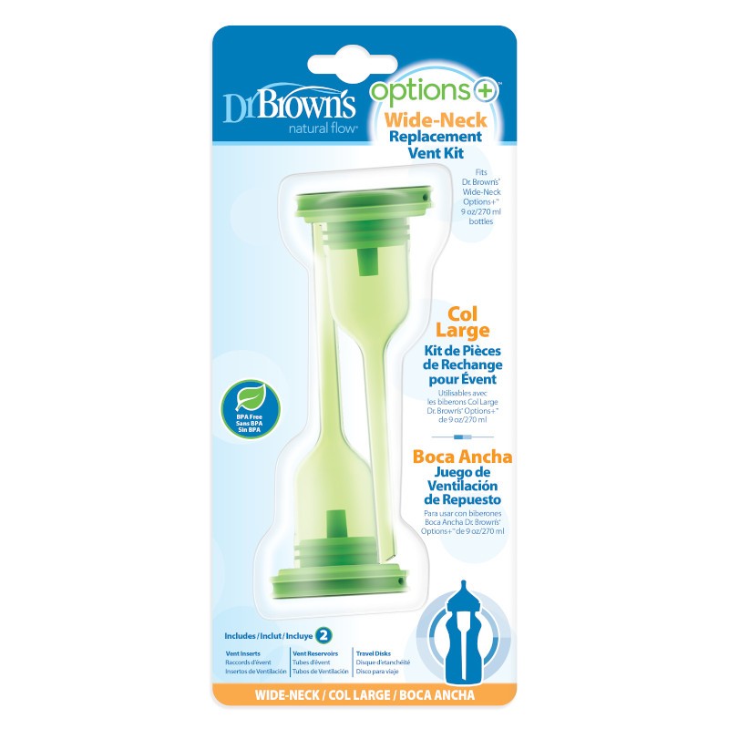 Setul de rezerve este potrivit pentru biberoanele Dr. Brown’s cu gat larg Options+, de 270ml.