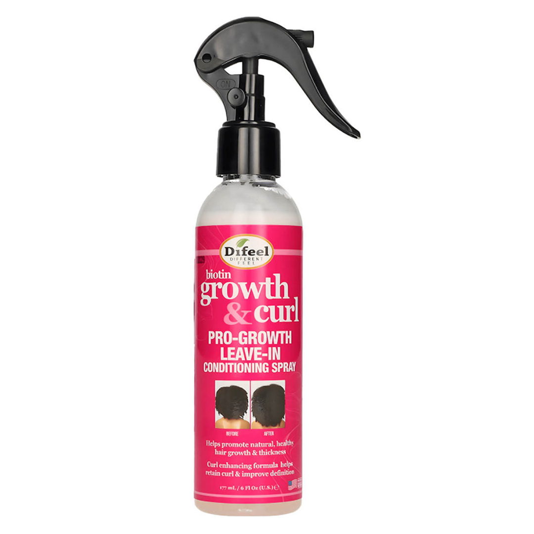 Difeel Growth & Curl Pro-Growth Leave-in Spray este un spray de condiționare lăsat în păr, formulat pentru a sprijini creșterea naturală și sănătoasă a părului, precum și pentru a îmbunătăți definirea și aspectul buclelor.