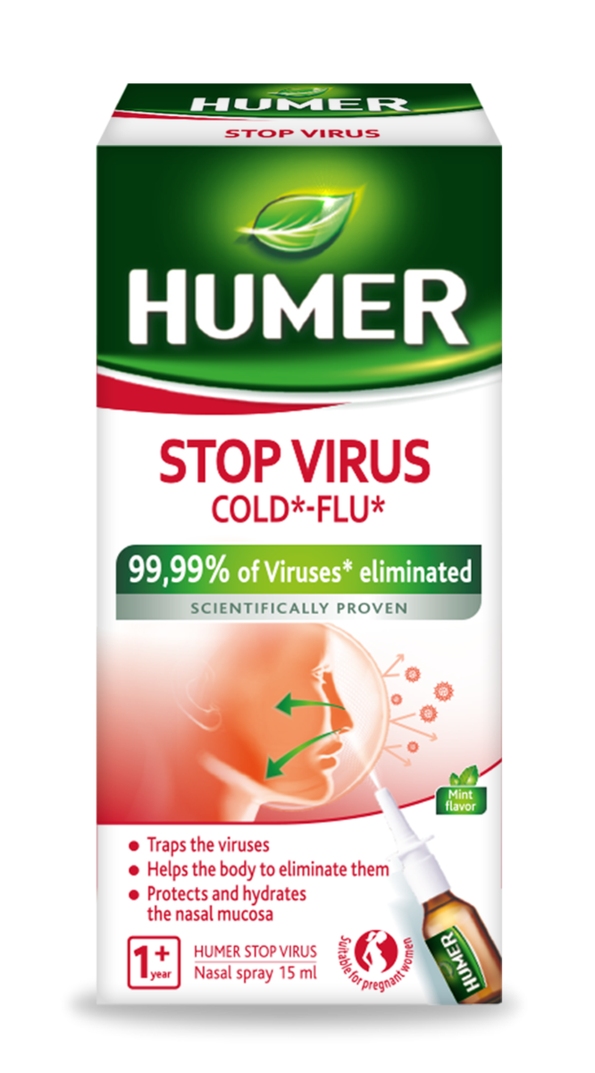 Humer Stop Virus elimina 99,99% din virusuri de raceala si gripa*.
