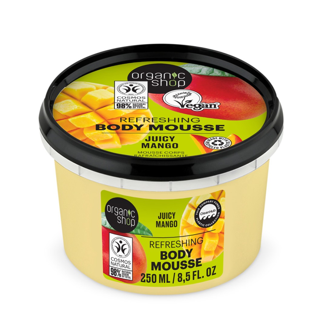 Spuma de corp Juicy Mango Body Mousse de la Organic Shop hraneste intens pielea, oferindu-i fermitate, elasticitate si un parfum tropical delicios de mango copt.