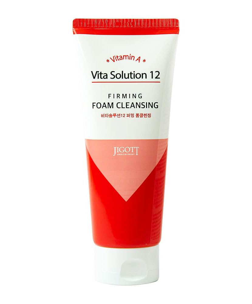 Jigott Vita Solution 12 Firming Foam Cleansing este imbogatita cu vitamina A si un complex de extracte de plante, rezolva mai multe probleme deodata: normalizeaza secretia de sebum, exfoliaza particulele moarte ale pielii, curata delicat porii, tonifica si improspateaza dermul.