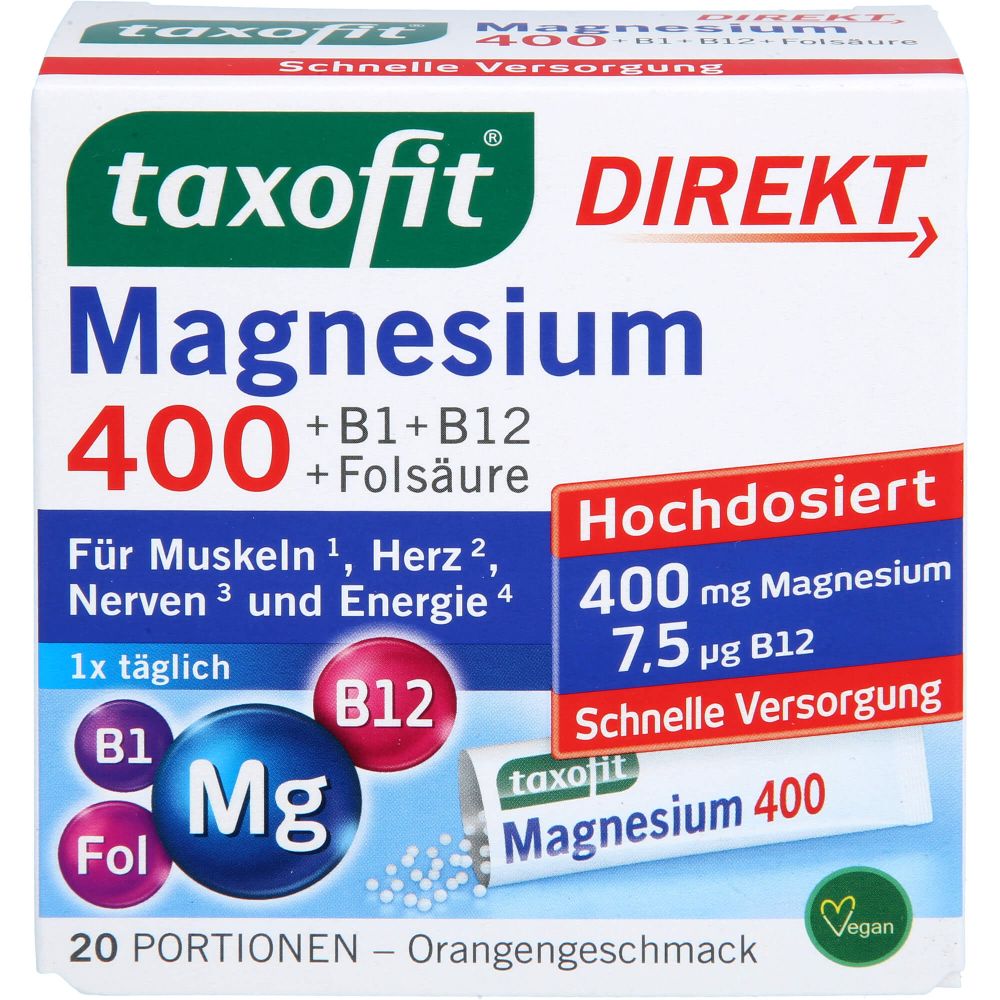 Acest produs Taxofit Magnesium 400+B1+B6+B12+Folsäure 800 Gran. 20 St din categoria Health & Beauty > Health Care > Medicine & Drugs se poate comanda online la un pret redus.