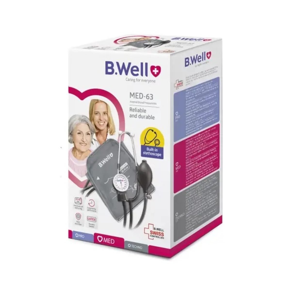 Kit de tensiune arteriala aneroida B.Well MED-63 cu stetoscop incorporat si manseta M-L. Perfect pentru automasurare. Trusa de tensiune arteriala aneroida MED-63 este fiabila si durabila, ceea ce o face sa fie potrivita atat pentru uz profesional, cat si pentru trusa de prim ajutor.