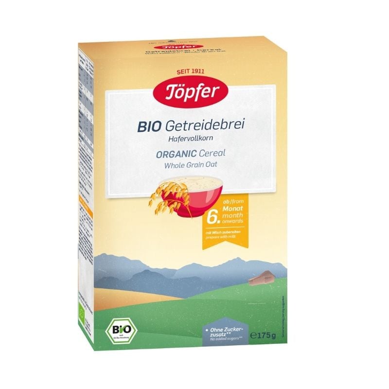 Topfer Cereale ovaz integral este o sursa de hrana adecvata diversificarii alimentare, cu ingrediente organice, incepand cu luna a 6-a. Prin utilizarea boabelor de ovaz integral, se pastreaza majoritatea substantelor nutritive, putand fi asimilate foarte usor.