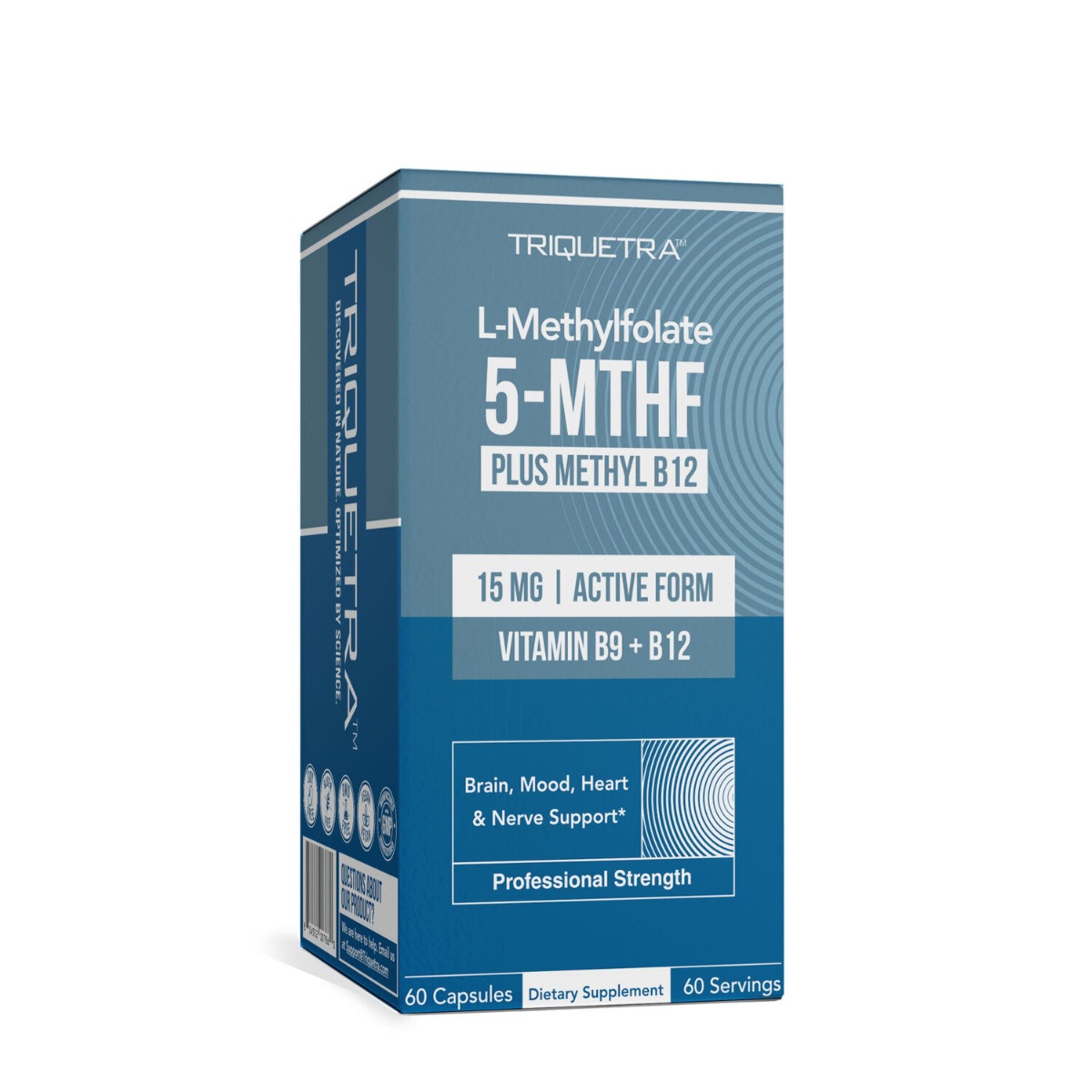 Supliment alimentar cu L-metilfolat si vitamina B12, formulat pentru sustinerea functiei cognitive, a metabolismului celular si a sistemului nervos.