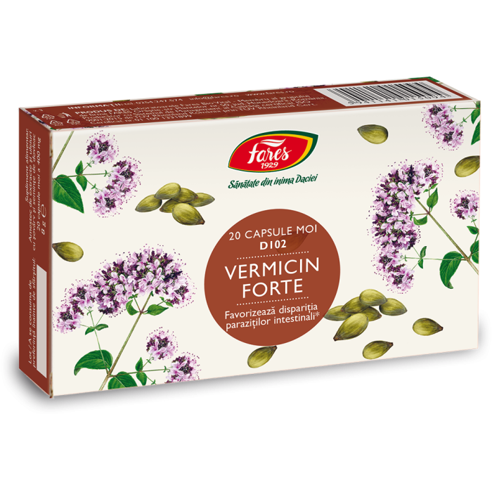 Acest produs Vermicin Forte, 20 capsule moi, Fares din categoria Suplimente alimentare se poate comanda online la un pret redus.