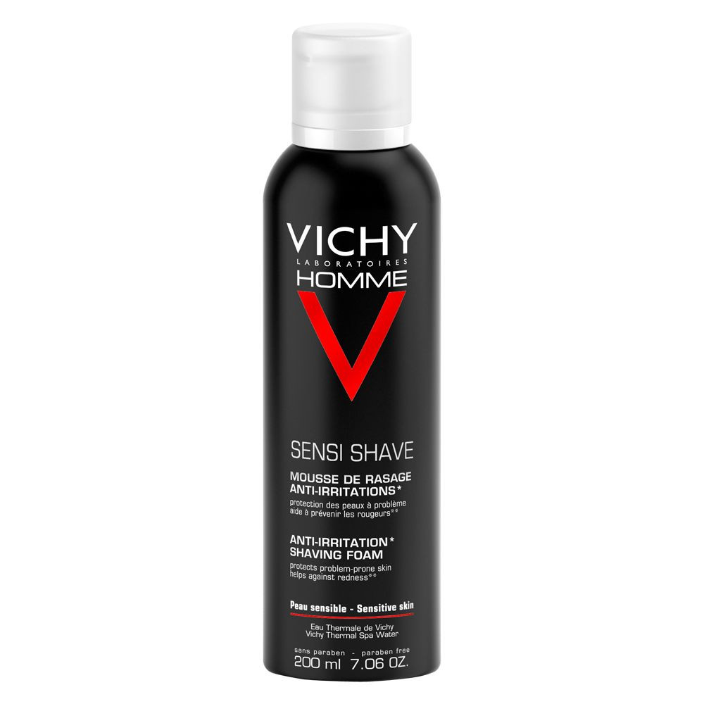 Vichy Homme Spuma pentru barbierit anti-iritatii 200ml - Pentru bărbaţii cu piele sensibilă sau cu probleme (fire crescute sub piele, coşuri cauzate de ras etc) care suferă de roşeaţă sau iritaţii după ras