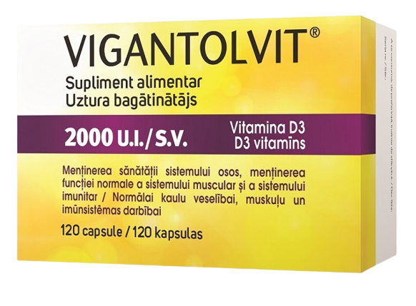 Acest produs Vigantolvit 2000 UI/SV Vitamina D3, 120 capsule, Catalent din categoria Suplimente alimentare se poate comanda online la un pret redus.