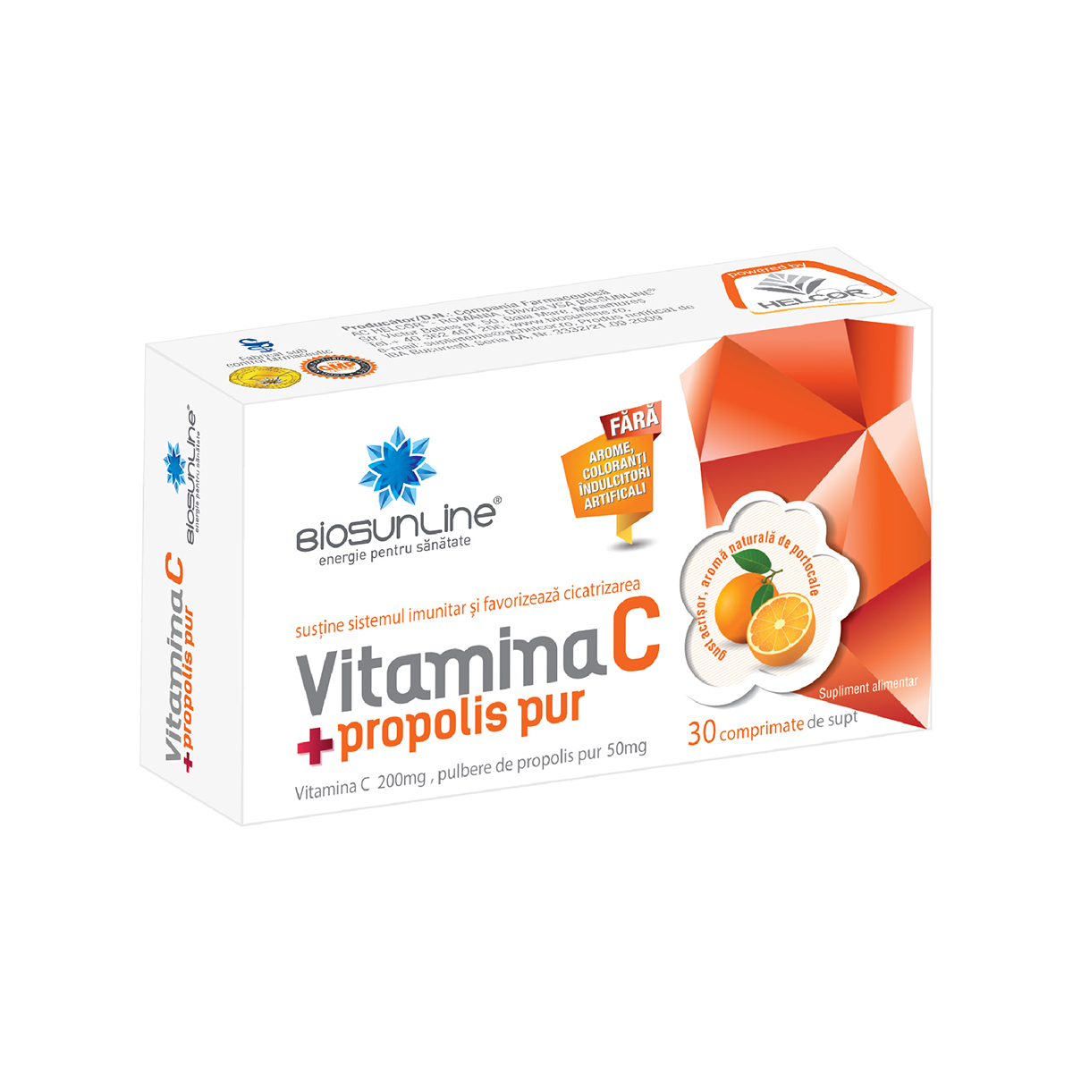Acest produs Vitamina C cu propolis, 30 comprimate de supt, BioSunLine din categoria Suplimente alimentare se poate comanda online la un pret redus.