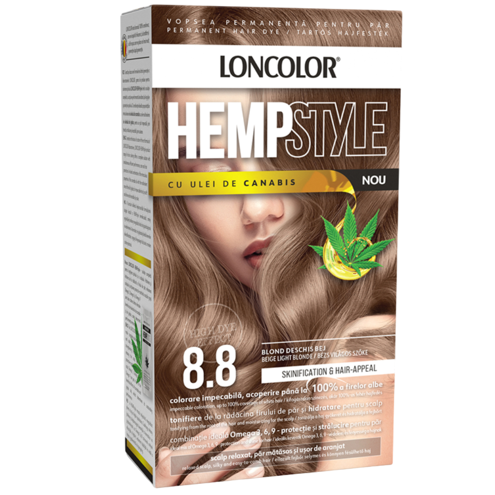 Acest produs Vopsea de par permanenta Hempstyle Nr. 8.8, 110ml, Loncolor din categoria Frumusete si ingrijire se poate comanda online la un pret redus.