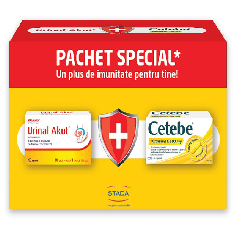 Acest produs Walmark Pachet Urinal Akut 10tb + Cetebe Vitamina C 500mg 30cps din categoria Suplimente si produse naturiste se poate comanda online la un pret redus.
